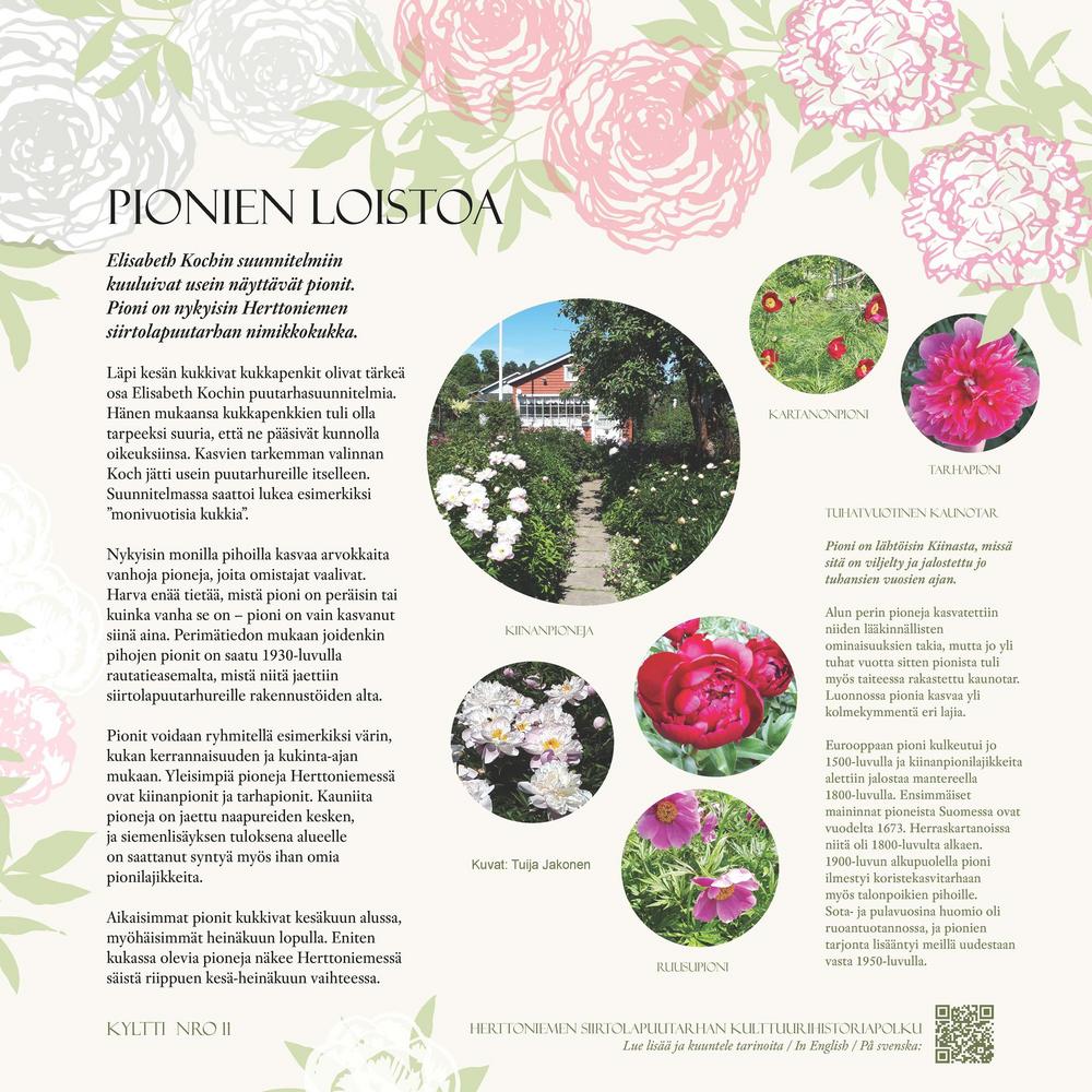 - Tuija Jakonen kartoitti Herttoniemen siirtolapuutarhan pionit (Herne-lehti 2019)